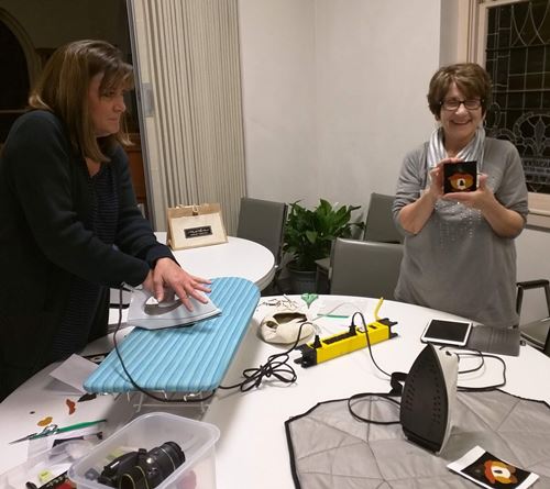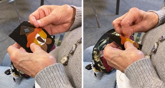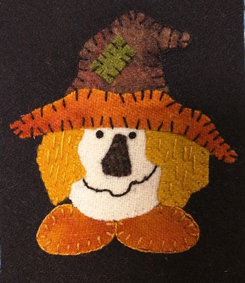 We were all fortunate to be given kits that Roxanne made up from her wool stash. The pieces were traced already onto fusible webbing. We cut them out, ironed on, and learned the stitching if needed.