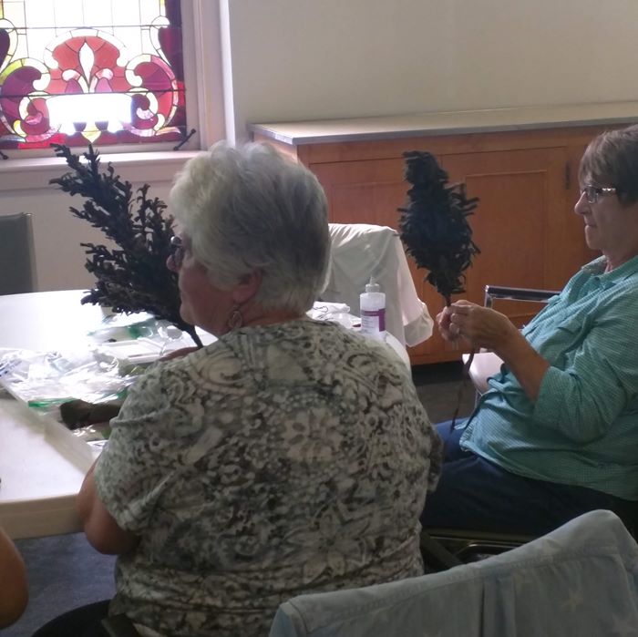 We had so much fun gathered at round tables to make our pine trees. Georgiana is a good teacher and midst it all we chatted, laughed, and learned!